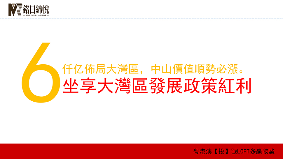 项目旁更有天奕国际广场项目、迪兴德宝怡高等大型综合体项目,是中山市未来政府重点发展核心区域。港珠澳大桥已经全线通车,进一步加快粤港澳三地的经济往来与深度合作。深中通道和港珠澳大桥的建成也将有利于中山业主便捷享用周围五大机场,为便捷出行提供多种选择。随着深中通道的正式动工建设,从深圳 30 分钟即可到达中山,实现深中两城“半小时生活圈”指日可待。
