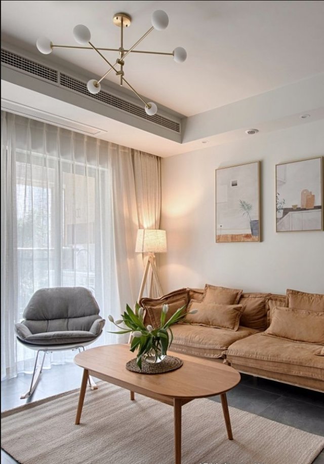 原木家具、植物系的装饰画、柔软的编织物、米色的窗帘,再添加一撮阳光,便是你浓我浓的情意;