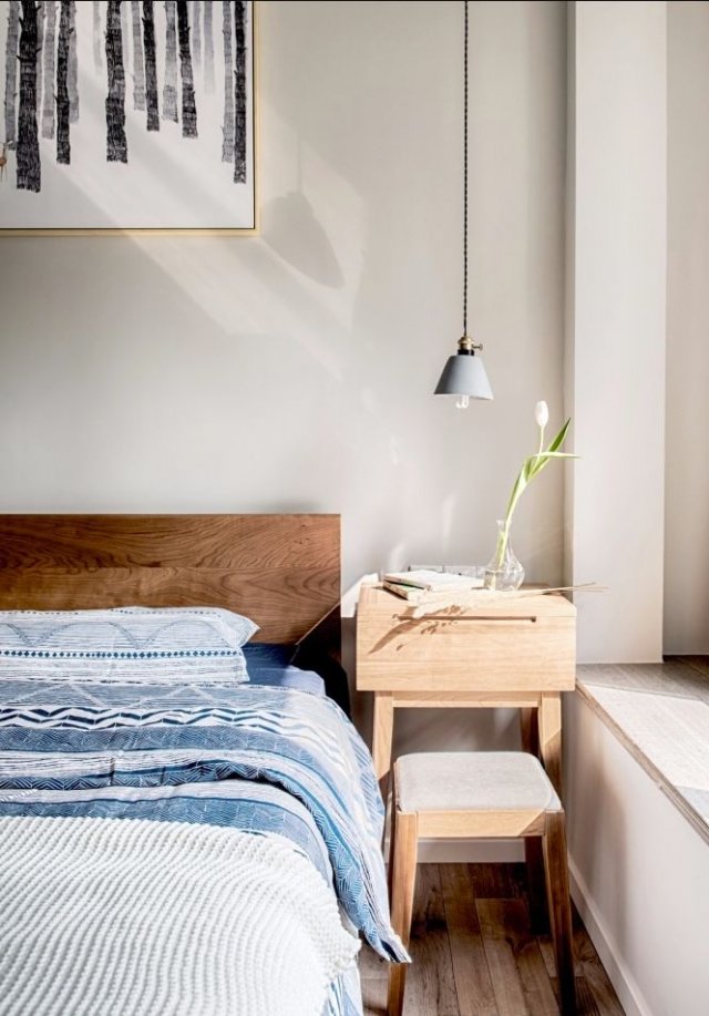 卧室是休息的区域,在于安静以及休息质量;床头一支郁金香,开启元气满满的一天。